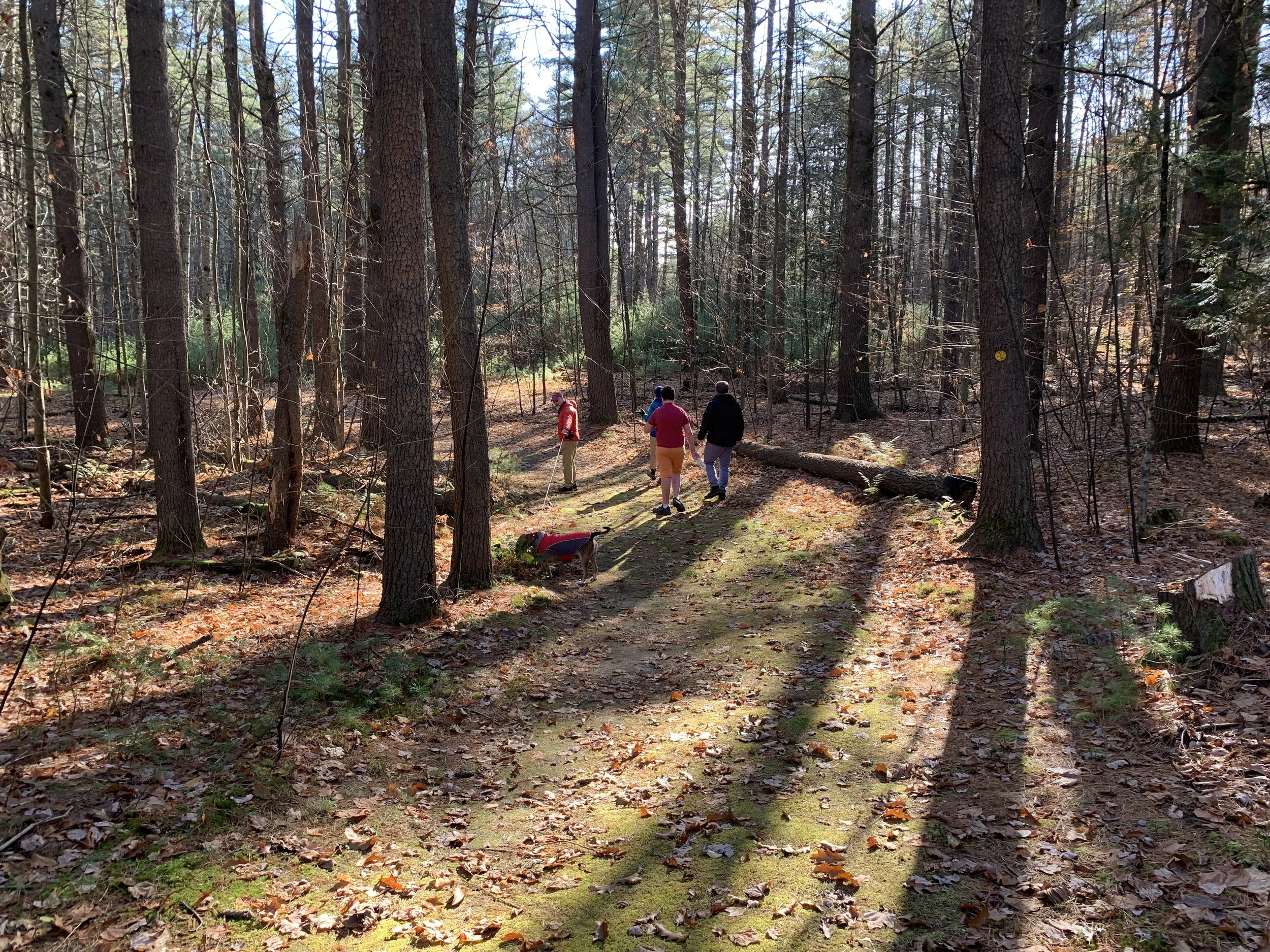 The Lake George Elementary School has about 2 miles of trails through a wooded area behind the school that are open to the public for hiking, cross-country skiing, mountain biking, and snowshoeing. The trails are wide and are pretty level for walking on, though there are a couple of hills for some challenge. Overall these are easy/moderate and with three loops the hike can be adjusted for length.